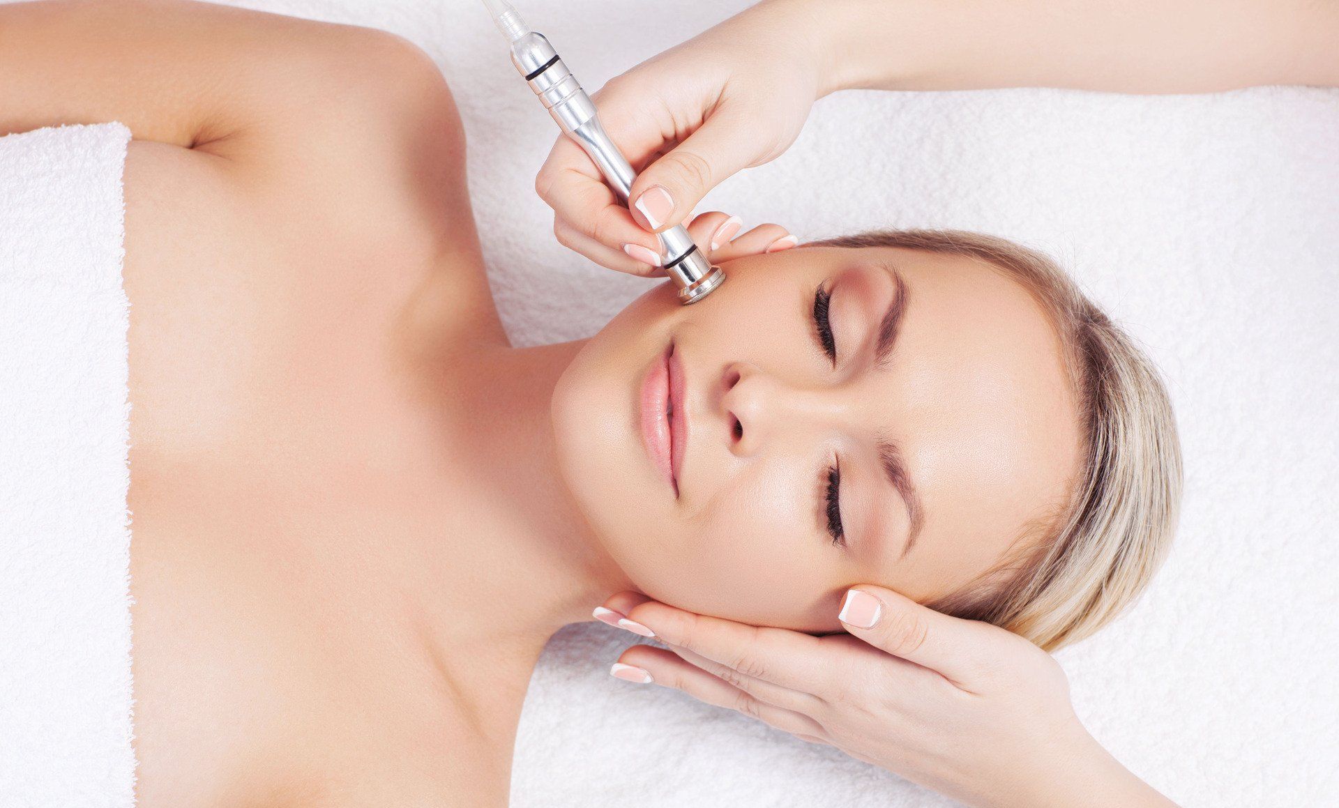 Microdermabrasion uses crystals projected through a tube to mechanically exfoliate dead skin cell layers, stimulating collagen production for thicker firmer skin and acts as resurfacing for creating fresh radiant skin